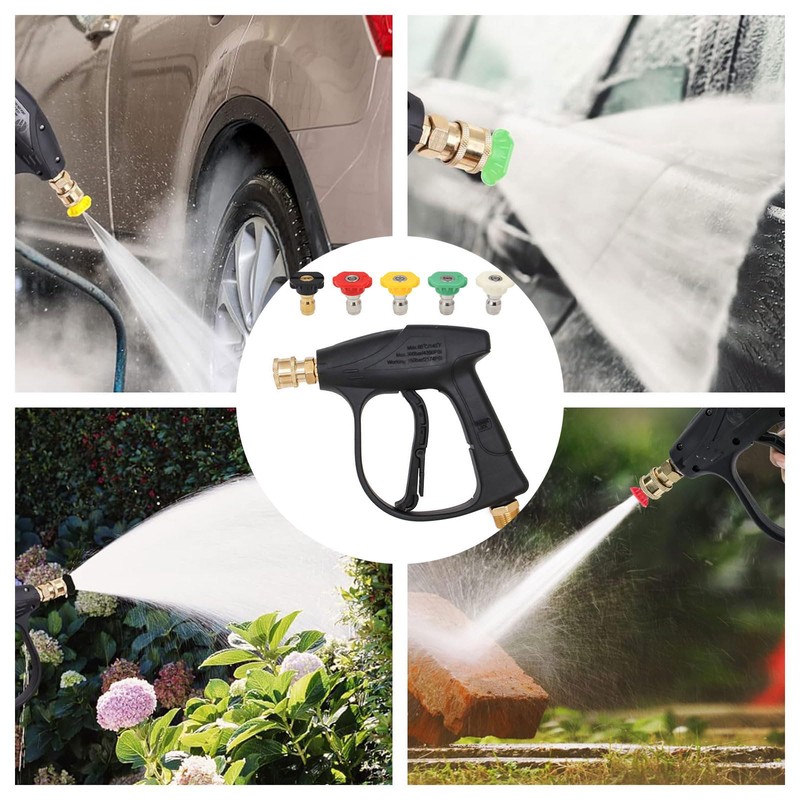 Pressure Washer Gun, 4350 PSI 1/4" Short Nozzle Jet Cleaning, 5 Water Nozzles, M22-14 Hose Connector Compatible with Karcher, for Car Wash and Patio Cleaning (M22-14mm)