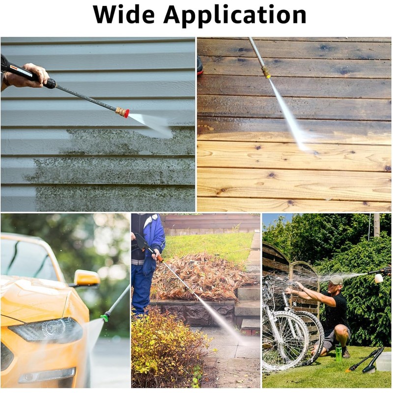 - ๐๐ข๐๐ ๐๐ฉ๐ฉ๐ฅ๐ข๐๐๐ญ๐ข๐จ๐ง: Pressure washer tips meet your needs in different situations, such as watering flowers, washing car and cleaning hard-to-reach areas etc. Please choose a suitable nozzle for different applications.