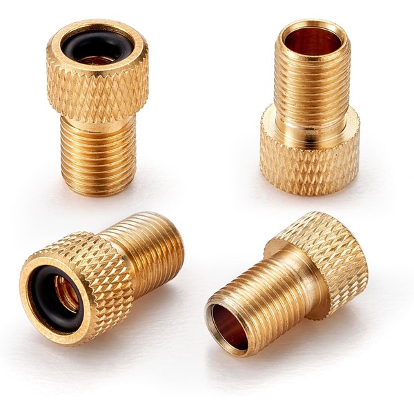 Presta Brass Valve Adaptor, Convert Your Bike's Presta Valve Into a Schrader Valve Adapter to Inflate Tyres with a Standard Pump or Air Compressor (Pack of 4)