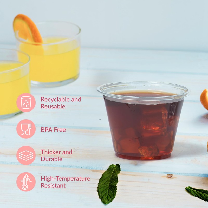 - QUALITY: Prestee 9 oz cold cups are made of high-quality, PET Plastic. PET Plastic Cup Technology ensures that these Plastic Cups are Crystal Clear, Durable, Impact and Crack Resistant.