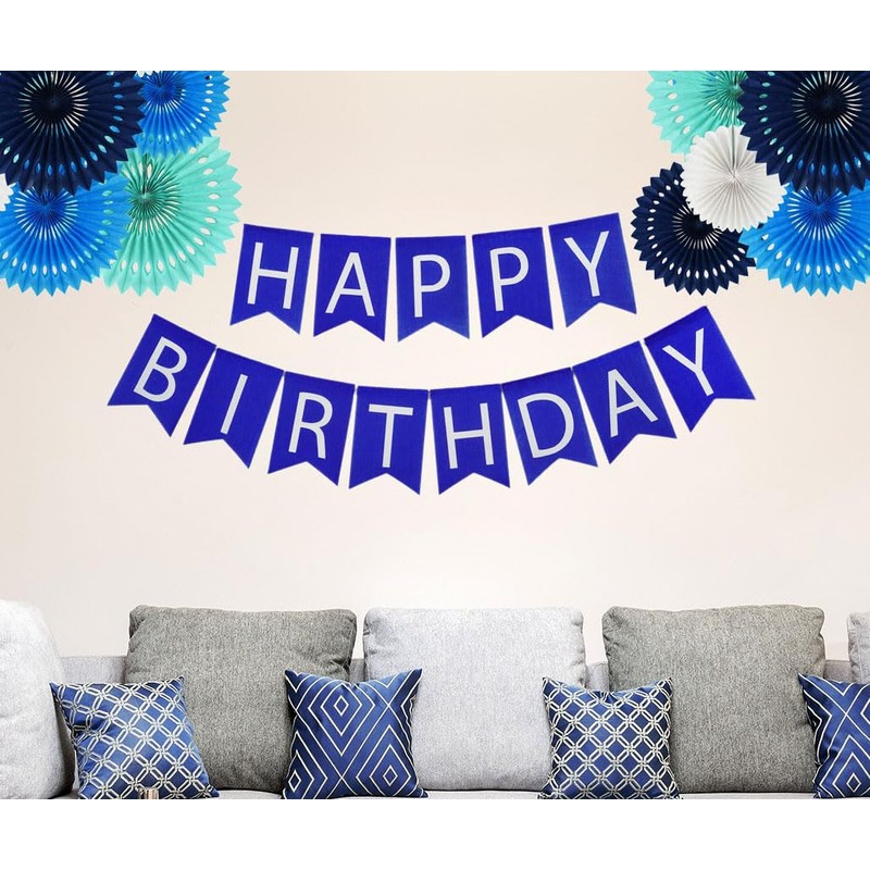 - Plain blue flags with white happy birthday sign printed, perfect blue happy birthday banner for men boys