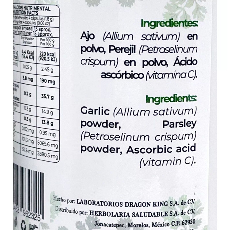 Ajo con Perejil 60 Cápsulas Pretty Bee con Vitamina C