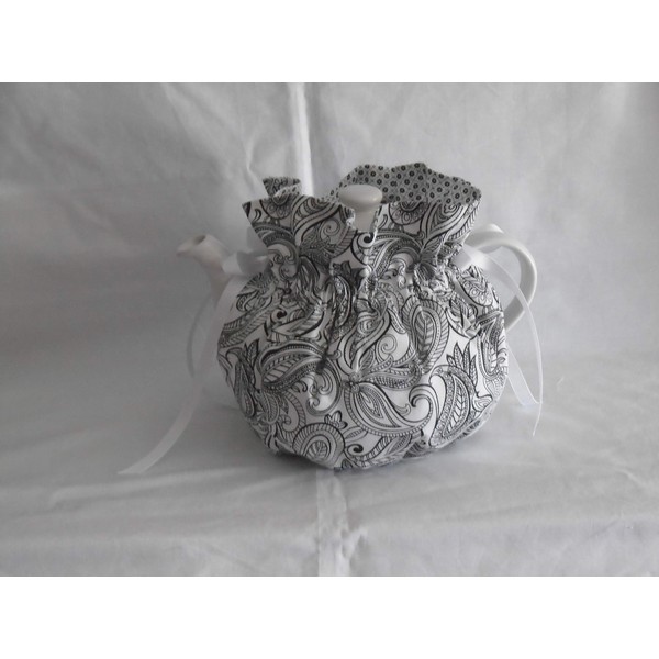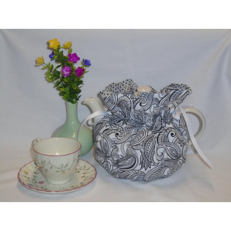 Pretty Black & White Paisley Print 6 Cup Reversible Tea Pot Cozy