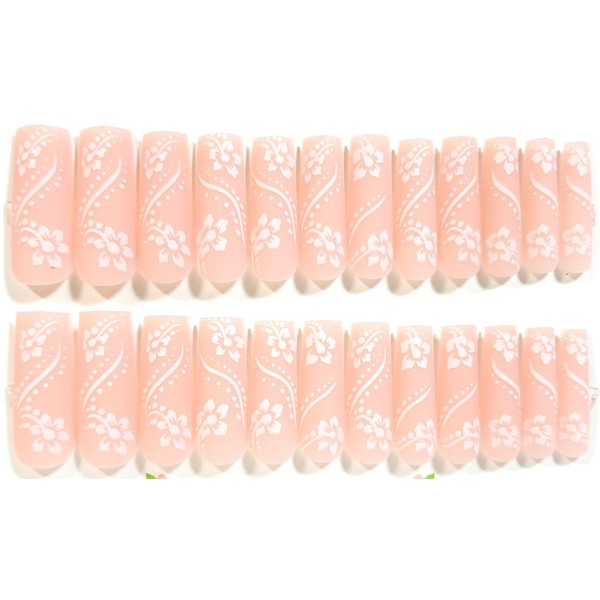 Pretty In Floral Lace Matte Long Square Press On Nails - 24 Pieces - Artificial Nail Kit