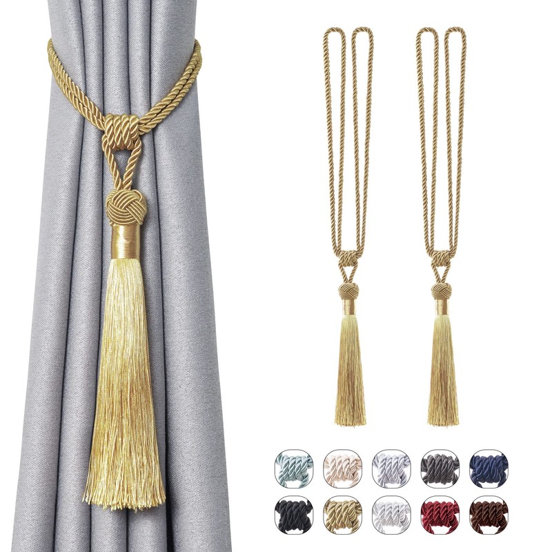 Pretty Jolly curtain tassel tiebacks are available in ten colors for your choice: Black,White,Silver,Dark grey,Light blue,Navy blue,Beige,Gold,Deep Coffee,Wine red.