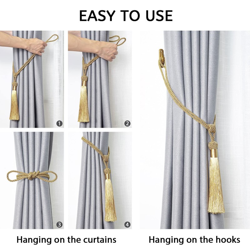 - EASY TO USE: You can directly tie up your curtains in your favorite way, or you can also use a hook to fix your curtain tie backs.According to different thickness of curtains, you can use different binding methods. If you have a more beautiful way of binding, welcome to share with us. Let us see your rich imagination