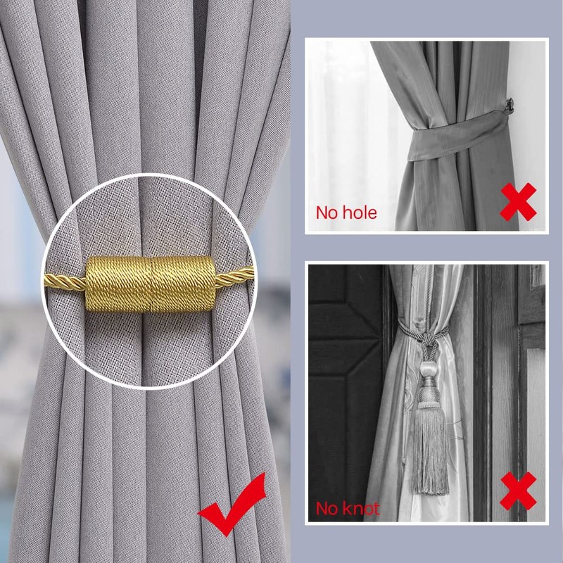 - EASY TO USE:Pretty Jolly curtain tie back holders can fix or loosen the curtains within a few seconds.You can use different binding methods according to your preferences to make your curtains achieve the best beauty. In addition, when you are not using tie backs for curtains, you can attach it to any position of the curtain without worrying that magnetic curtain holdbacks will be lost for the next use