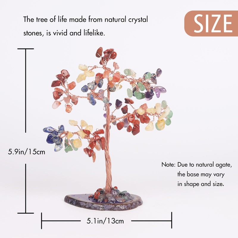 - 💟Art Meets Nature:This colored crystal tree is not only a decor piece,but also a handcrafted work of art.Made with crystals,tree of life shaped design by copper wires.Each of “leaves” is carefully placed to create a balanced,The slice base was made from Agate and Embellished with crushed crystals.Because it is handmade,Slight variations between every one,No two trees are identical,making a one of a kind statement piece