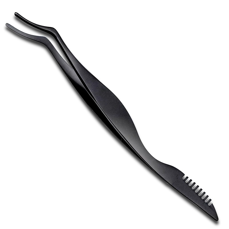 Pretty memory Upgraded Lash Applicator Tool with Comb, 2-IN-1 Stainless Steel Eyelash Tweezers, Lash Extension Curlers, Curved Tweezer Clip for Easy Application and Removal, Black