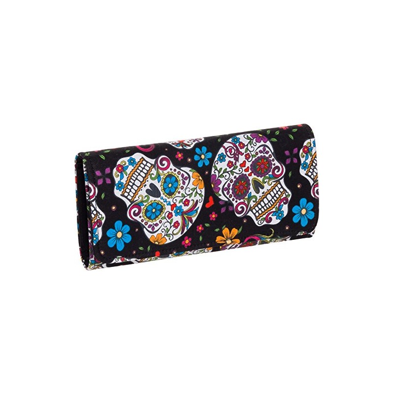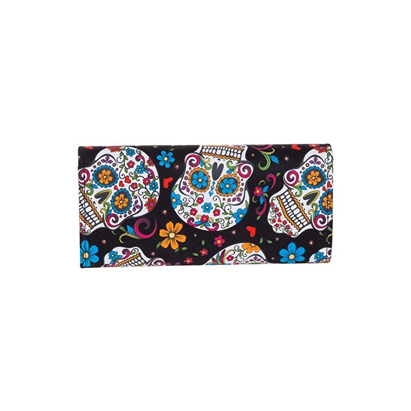 Pretty Sugar Skulls & Flower Tri Fold Clutch Wallet (Black/Multi)