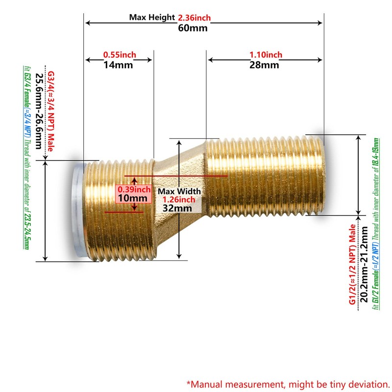 Easily change from standard G1/2 Thread to G3/4 Thread(or from G3/4 to G1/2), for connecting G1/2 Thread to G3/4 thread Connections/Interface/Nuts/Pipes.