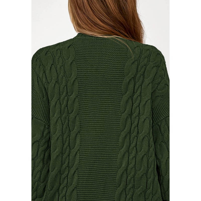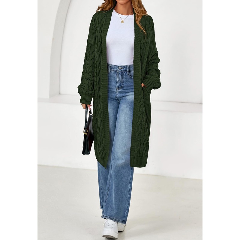 PRETTYGARDEN Long Sleeve Open Front Chunky Cardigan Sweaters for Women Cable Knit Long Cardigans Fall Outfits with Pockets (Army Green, Large)