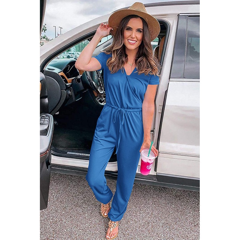 - Características: cintura elástica, pie de viga, cuello redondo, hombros descubiertos, manga corta, color sólido, cintura elástica, espalda con ojal, pantalones largos, estilo casual, ligero y transpirable