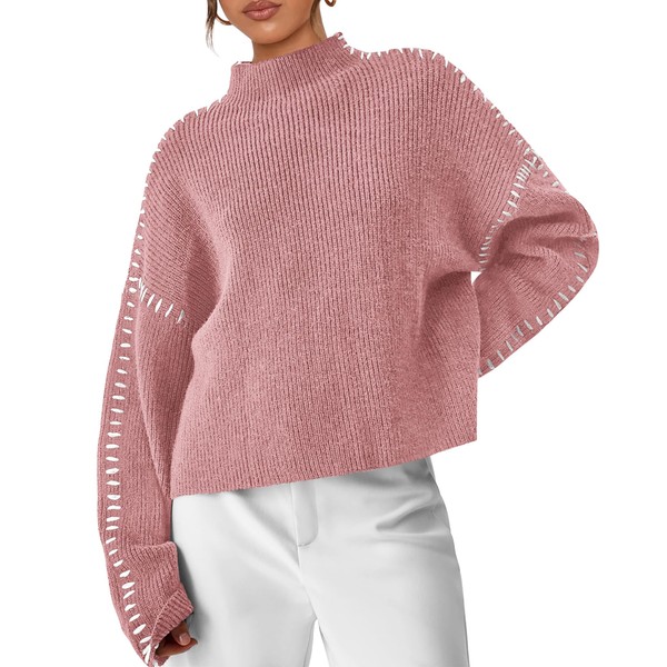 PRETTYGARDEN Women's Chunky Knit Sweaters 2025 Fall Long Sleeve Mock Neck Oversized Pullover Tops Winter Fashion Clothes (Grey Pink,Medium)