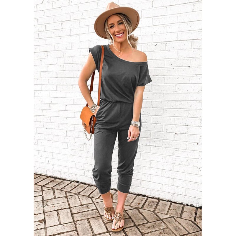 Classic loose fit off the shoulder jumpsuits and rompers for women summer