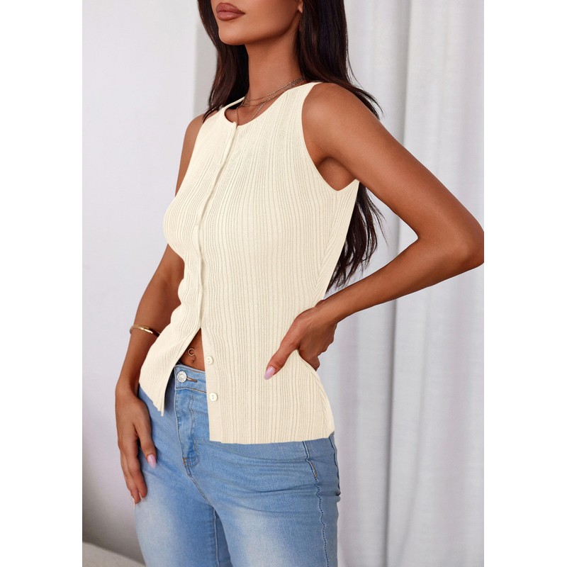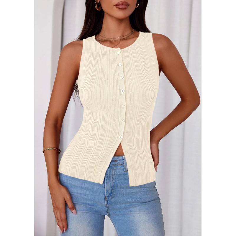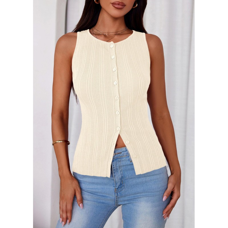 - Size Attention:S=US 4-6,M=US 8-10,L=US 12-14,XL=US 16-18.Sleeveless Button Down Shirts For Women Made Of Stretchy Ribbed Knit Fabric,Which Is Lightweight And Breathable,Offering The Perfect Balance Of Style And Comfort In Spring Or Summer