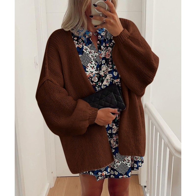 - Oversized design: Slouchy silhouette; dropped shoulder sweater top; lantern sleeves cardigan; simple solid color; below hip-length; open front sweater; long sleeve cardigan; chunky cardigans; plus size clothes; lightweight outfits