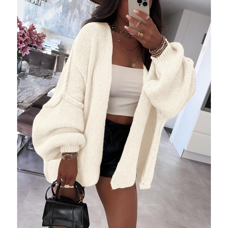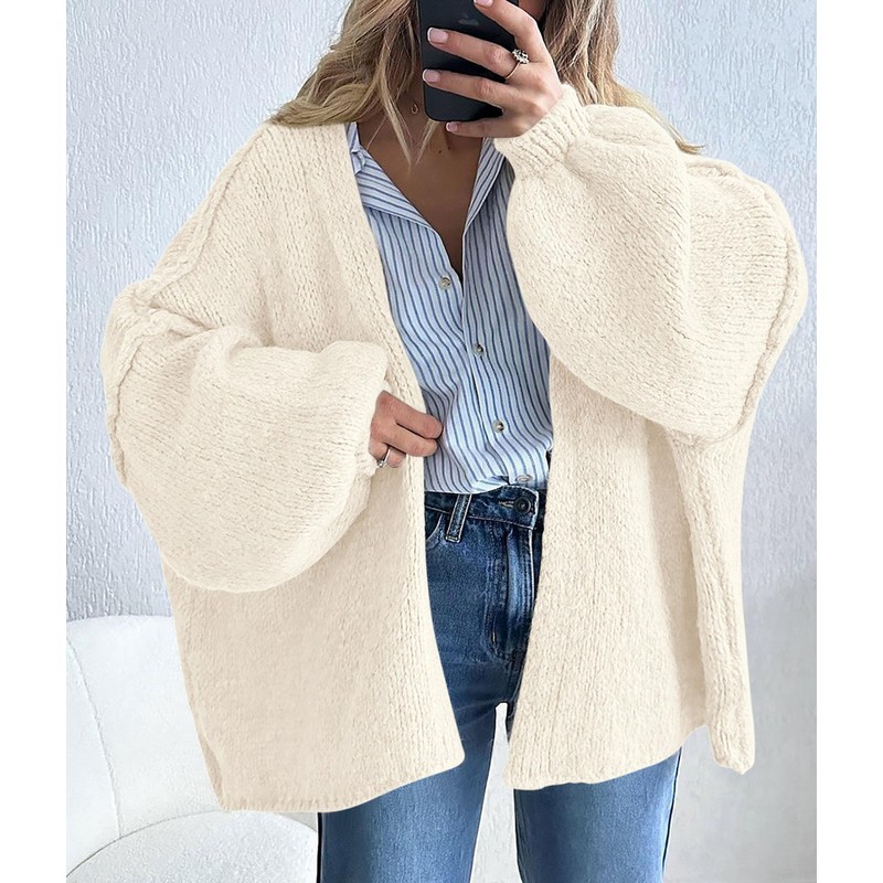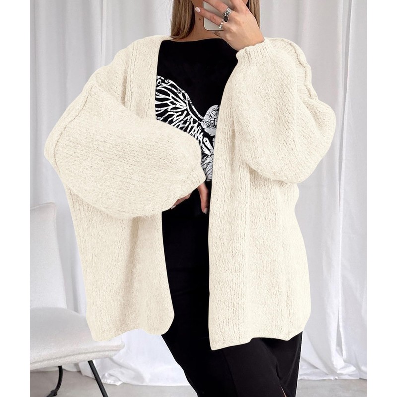 - Oversized design: Slouchy silhouette; dropped shoulder sweater top; lantern sleeves cardigan; simple solid color; below hip-length; open front sweater; long sleeve cardigan; chunky cardigans; plus size clothes; lightweight outfits