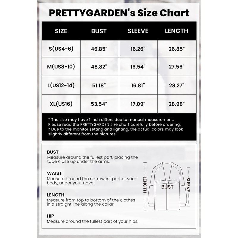 - Size: S=US 4-6; M=US 8-10; L=US 12-14; XL=US 16-18. This cardigan sweaters is lightweight and soft, stretchy, breathable, skin-friendly fabric, not too thick, this open front fall cardigan is very comfy to wear