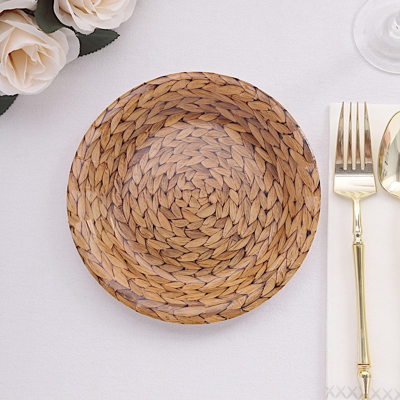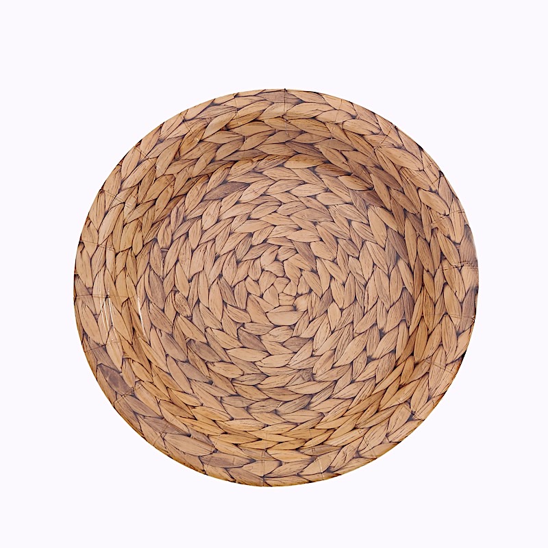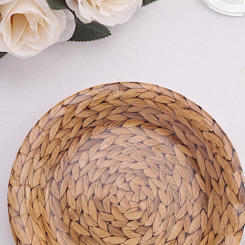 PrettyinCrystals 25 Natural 7 in Woven Rattan Print Disposable Salad Paper PLATES Party Events