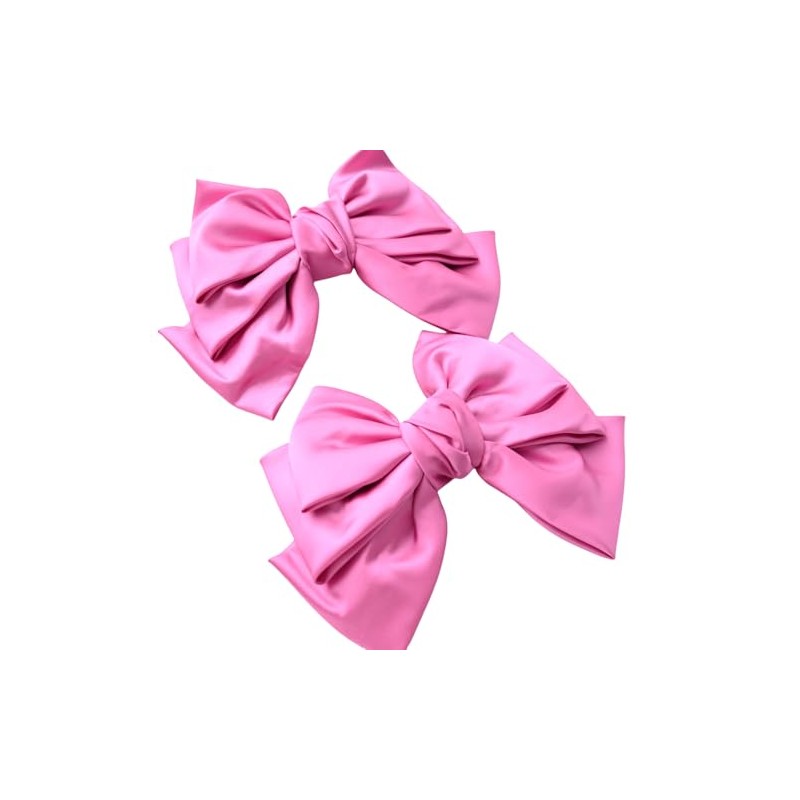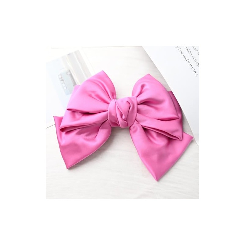 Prettyou Satin Fabric Hairbow Clip Barrettes,Large, layered bow with a spring clip (pink)