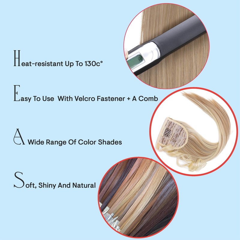 - High-quality synthetic fibre, heat-resistant up to 130 °C, washable, feels like real hair.