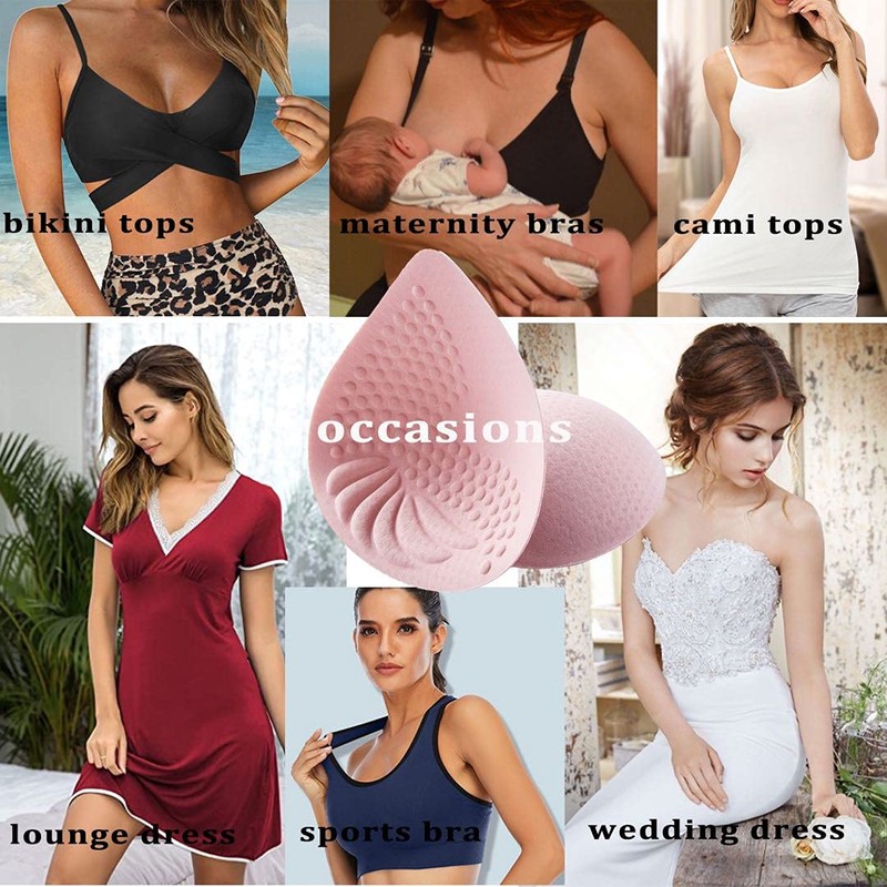 - Latex bra pads inserts:our bra pads for women are made of latex,with breathable holes, our bra cups inserts are very breathable and soft, and our bra pads have a great resilience,can shape your chest very well and offer a cozy feeling at the same time