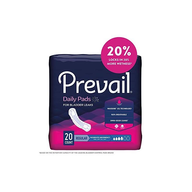 Prevail Incontinence Bladder Control Pads for Women, Moderate Absorbency, Regular Length, 20 count