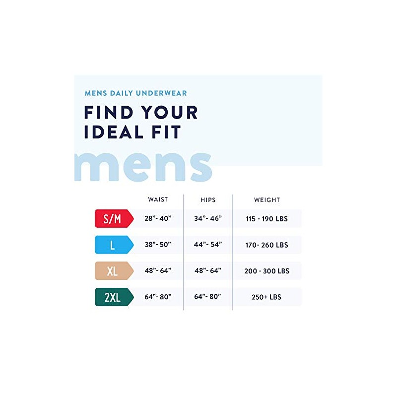 Prevail features the the Dri-Fit system which promotes skin health and helps reduce skin discomfort through a unique combination of cotton-enhanced* and synthetic fibers, which help keep you 5X drier than other leading brands.** Designed for maximum leakage protection, Prevail Underwear features Comfort- Shape Plus with gentle elastics that shape to your body for a more comfortable and discreet fit than standard adult diapers with the look and feel of everyday underwear. The cloth-like outer cover is soft and comfortable for all-day wear while ventilated waist panels allow air to pass through, reducing heat buildup and promoting healthy skin. Prevail Underwear is the #1 rated brand in the healthcare industry. Each product is constructed with a discreet core technology that allows for thinner, highly-absorbent material that enables the user to move more freely and confidently. Combined with a super absorbent polymer for dual protection, Odor Guard technology is proven to reduce the total amount of odor-causing ammonia formed during and after use. Moisture is quickly locked in upon contact for added leakage protection while the soft outer fabric provides additional all-day comfort. Extra Large size fits waist sizes 44 to 64 inches for a snug and comfortable fit. Each Prevail incontinence product features a proprietary Quick Wick layer of material with MaxSoft Technology that provides advanced softness with rapid liquid absorption for optimal product performance. This package includes one pack with 18 pairs of disposable underwear. Prevail adult care products are manufactured in Pennsylvania with attention to quality, safety, sustainability, and responsible sourcing practices by First Quality, a family- owned company. First Quality is a leader in developing premium quality products. In addition to our collection of adult care products, we also offer lines of baby products, feminine care, paper products, and bottled water.Seal of Cotton and cotton enhanced TM are trademarks of Cotton Incorporated. The topsheet of this product contains minimum 15% cotton. **Based on rewet testing of the leading protective underwear brands.