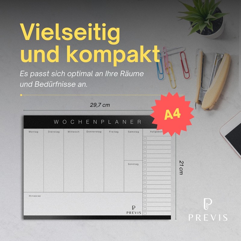 Previs Brand Weekly Planner Pad A4 (21 x 29 cm) with 50 Sheets and Minimalist Design - Desk Pad Weekly Planner Writeable