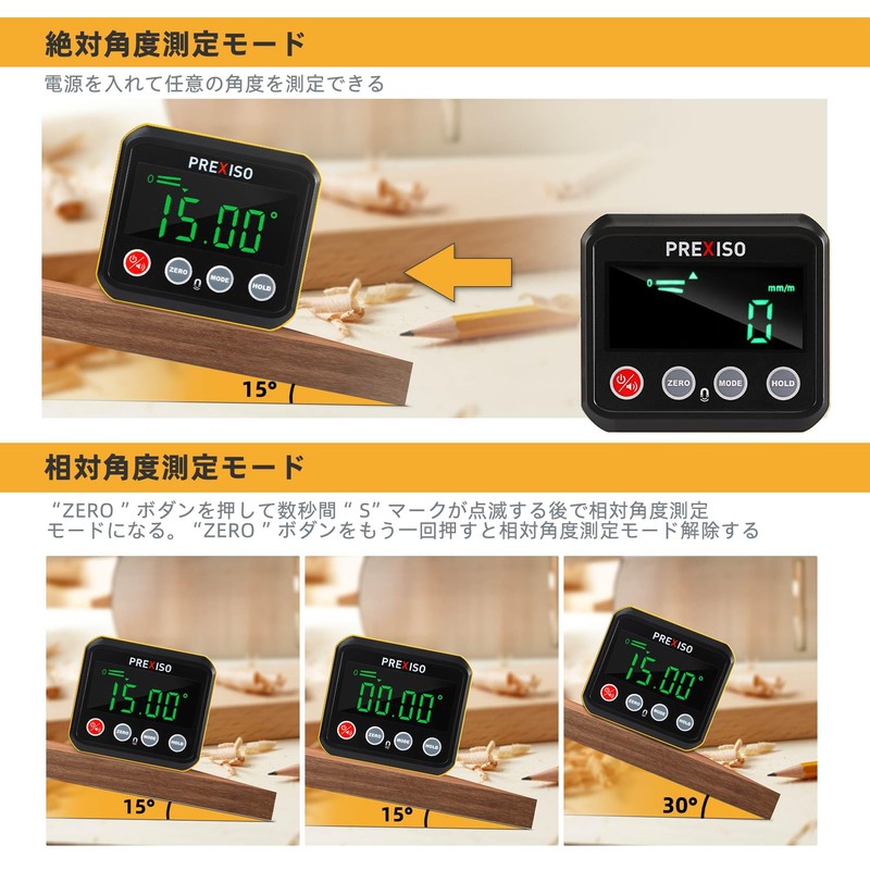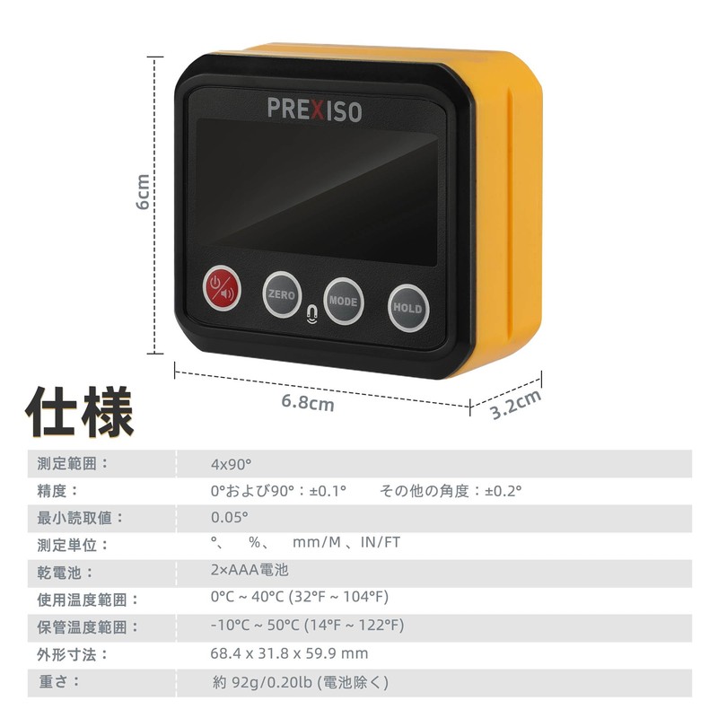 PREXISO Digital Angle Meter, Angle Meter, Inclinometer, Digital Level, Level Box, Level, LCD Display, 4 Units, Small, Storage Case, Construction, DIY, Lightweight, Easy to Operate, Japanese