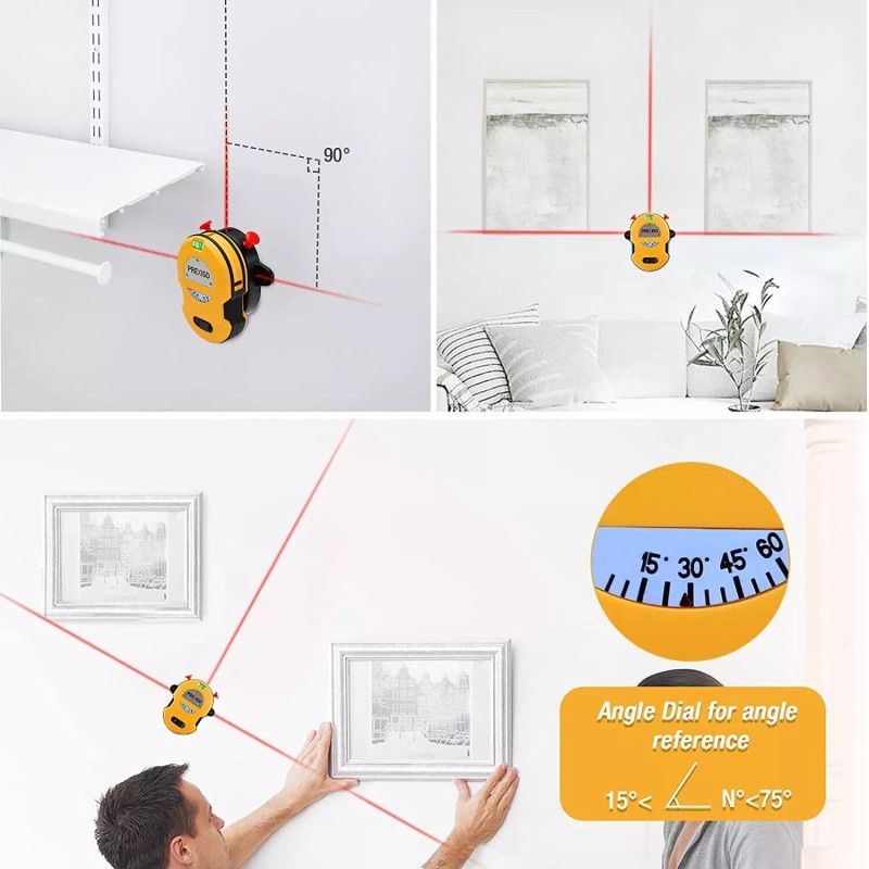 PREXISO Multi Surface Laser Level LED Light Vial One-switch Operation Angle Dial
