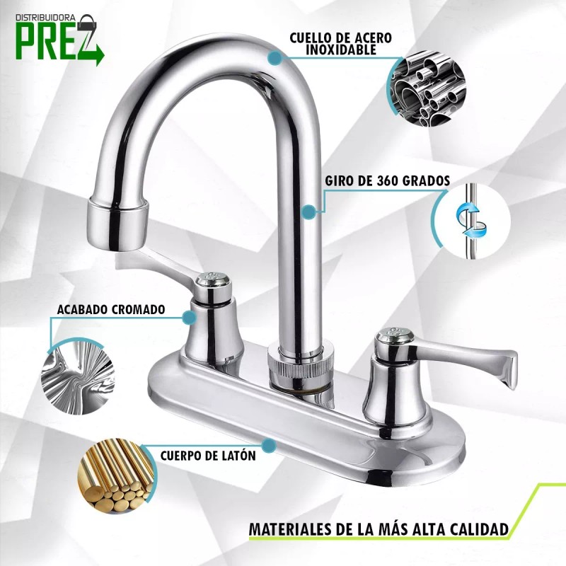 -Manerales Metálicos- Un grifo con un diseño elegante de doble asa para un mejor control de la temperatura y el flujo del agua. El diseño de dos asas es perfecto para casas, departamento, oficinas o cualquier ambiente.