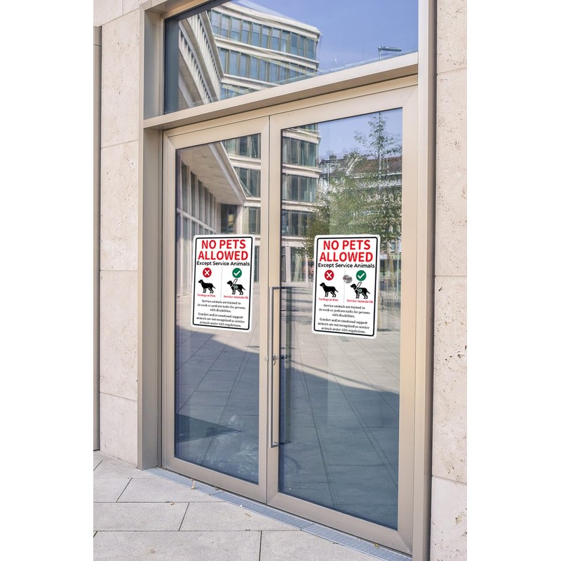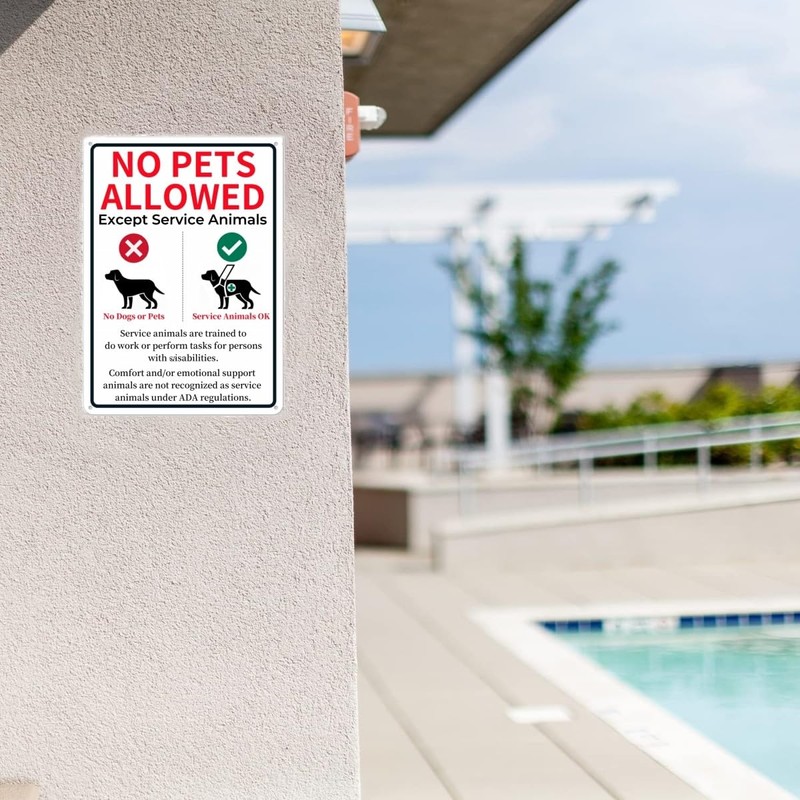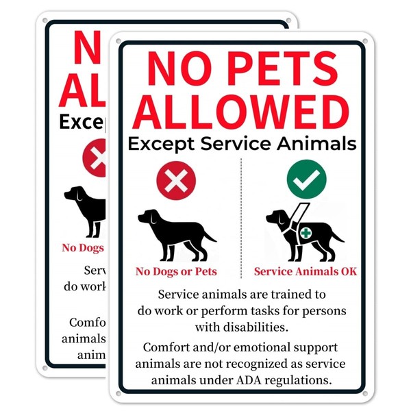 - 【Sturdy & Durable Material】10 x 14 inches, these no pets except service animals signs are made of 40 mil thick engineering grade reflective aluminum, which will not rust or bend easily, and will stay good as new even after many years of indoor or outdoor use.