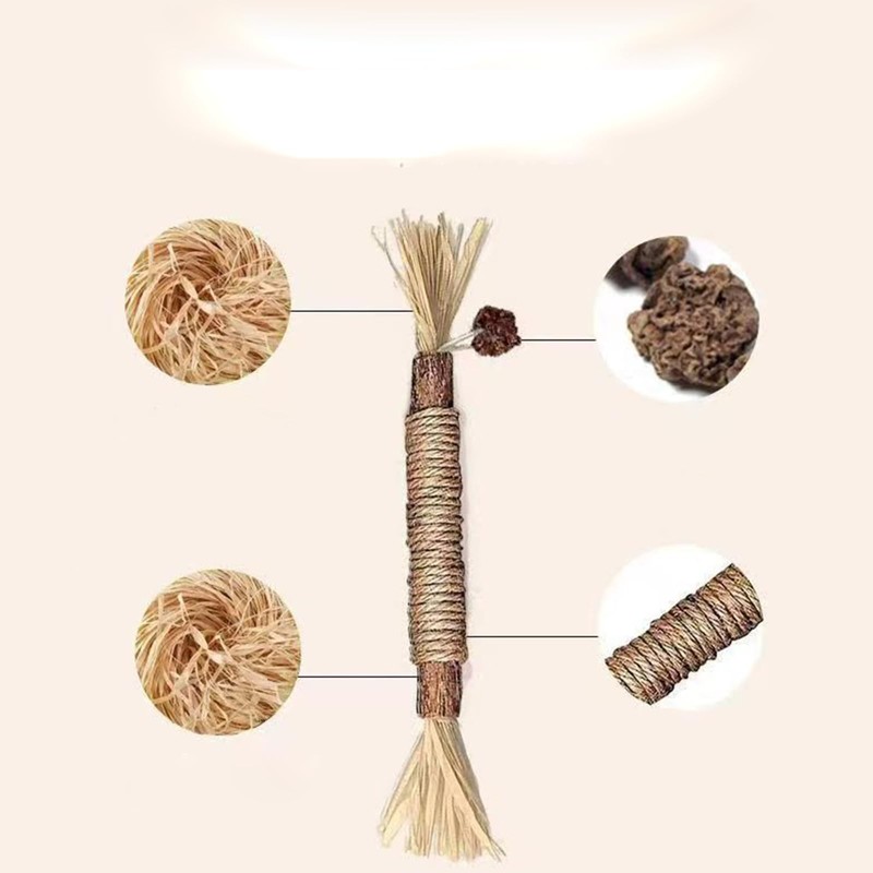 • Teeth Cleaning: The natural sisal rope and raffia of the cat chew sticks are bite resistant and can clean and grind their teeth while chewing it, which are effectively eliminated dental plaque and tartar, clear off bad breath and protect oral health.