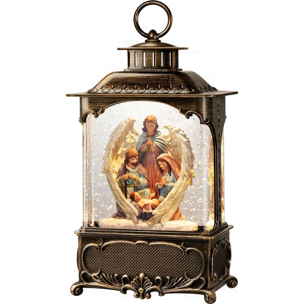 Priddop Nativity Snow Globe Christmas Decorations Gifts Jesus Angel Nativity Scene USB/Battery Timer Music Glitter Snowfall Lantern 10.2 inch