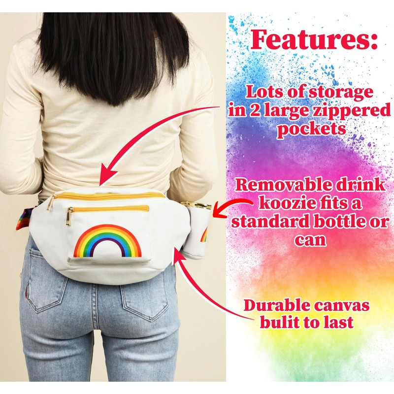 - This is a hiking-quality fanny pack! As a bonus, it features a gorgeous Pride rainbow theme. It is made of waterproof Oxford material and packed with lots of features and storage.