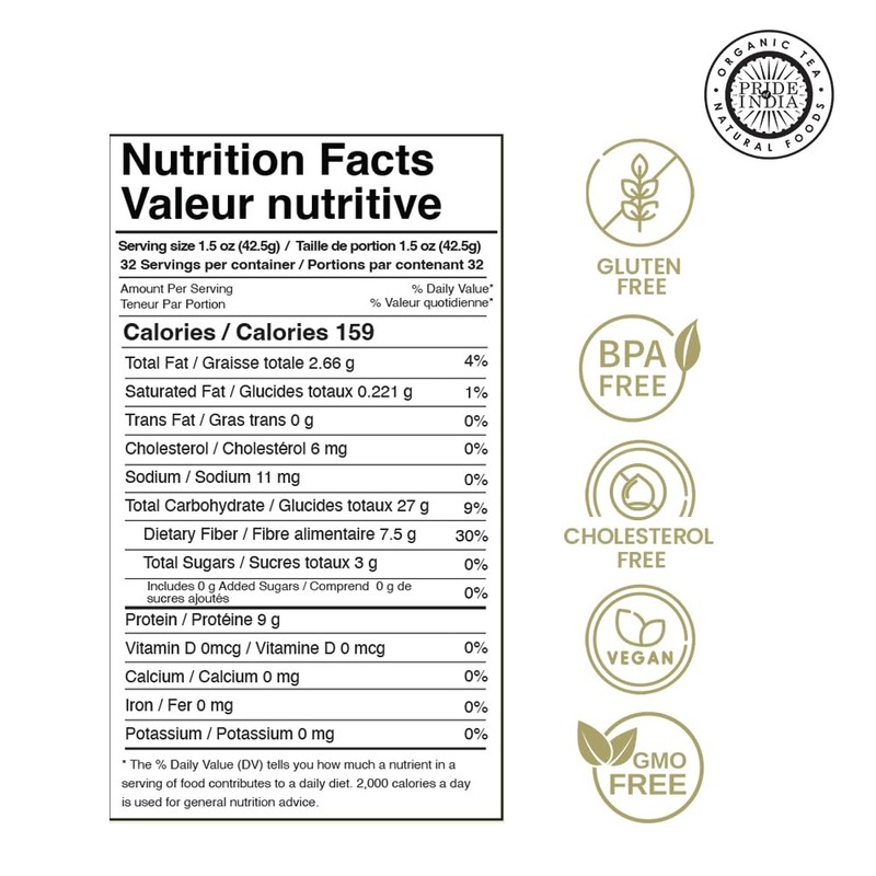 - Protein, Iron & Fiber Rich - 9 grams Protein & 7.5 grams Dietary Fiber Per Serving- Washed Clean