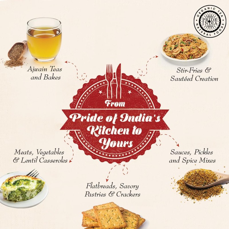 - PREMIUM QUALITY: Ajwain seed whole by Pride of India is sustainably sourced from small farms of India and grown without GMOs or additives to ensure consistency of great taste and health. It is an beneficial seed and exotic spice whose benefits go beyond just adding flavor to dishes.