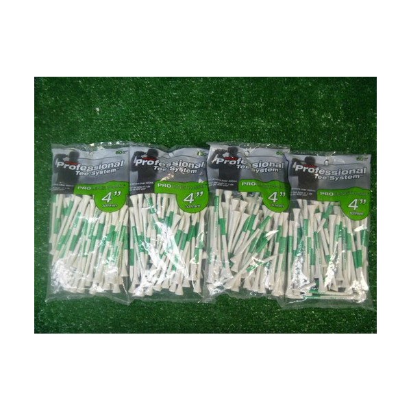 Pride Professional Tee System Golf Pro Length 4", 50 Count White/Green (4-Pack)