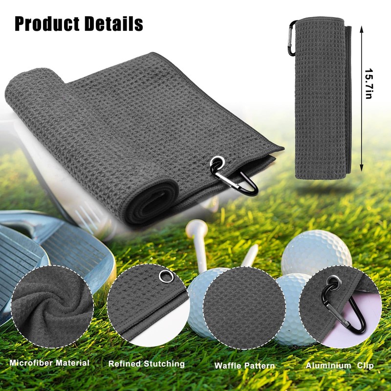 - 【Microfiber GOLF TOWEL】:Each waffle pattern golf towel sized 16" x 16" is made from high-quality microfiber that is soft, absorbent, durable, and easy to remove dirt, mud, sand, and grass.golf towels for men have durable stitching and towels come with a sturdy metal grommet to attach it to the bag.