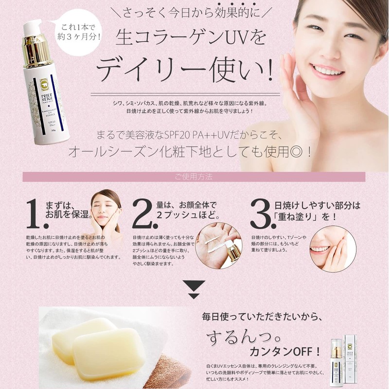 Prienege Raw Collagen UV Essence SPF 20 PA++ 1.1 oz (30 g) Sunscreen Makeup Base White Bear Cosmetics Additive-Free Placelich Syracoma UV Scatterer Free Encapsulation