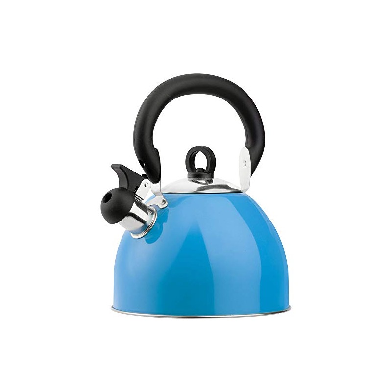 Prima 2.5L Stainless Steel Whistling Kettle in Blue 11122C Click to enlarge Prima 2.5L Stainless Steel Whistling Kettle Blue - NEW This ultra modern whistling kettle is ideal for your family whilst on your camping trips or at home. Suitable for use on gas, electric. halogen and Ceramic Hobs, this kettle made from stainless steel with its unique finishing is perfect for all your hot drinks. The capacity of 2.5 Litres is great for a medium sized family. The whistle spout is liftable with a simple pull of the lever on the spout for easy pouring. Ergonomic phenolic handle for your comfort and to keep the handle cool while pouring.