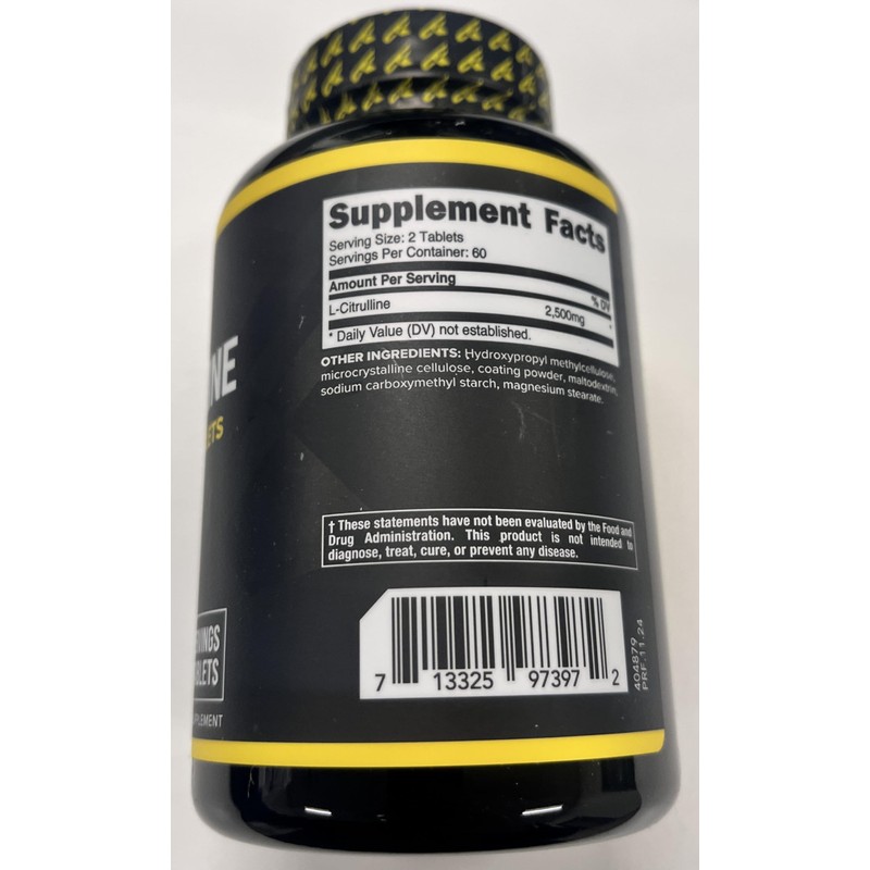 - 2500mg L-Citrulline Per Serving, 1250mg Per Tablet