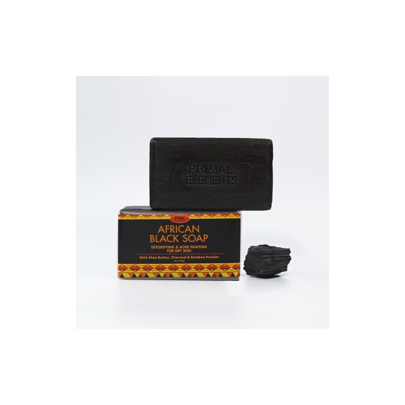 Primal Elements African Black Soap with Shea Butter and Charcoal for Dry Skin...