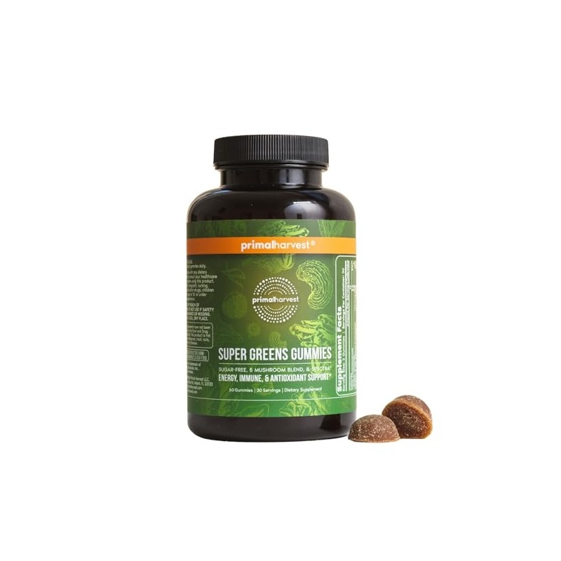 Primal Harvest Supergreens Gummies + Primal Collagen Powder | 2-Pack Bundle | 16 Superfoods + Type I & III Collagen Peptides | 30 Servings Each