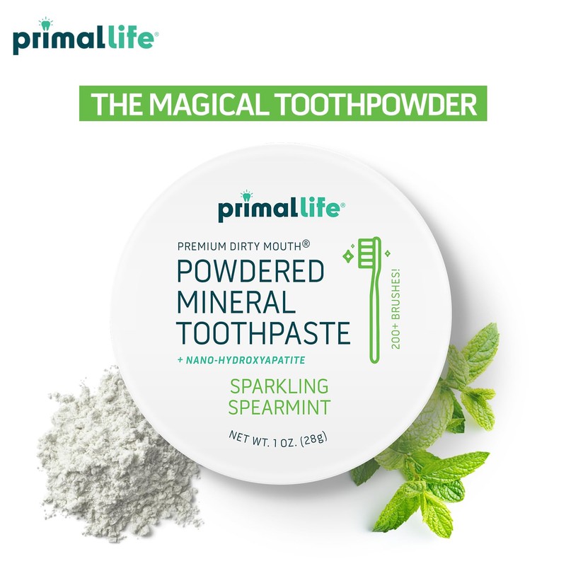 Primal Life Organics Primal Life Organics - Dirty Mouth Toothpowder, Tooth Cleaning Powder, Flavored Essential Oils with Natural Kaolin & Bentonite Clay, Good for 200+ Brushings, Paleo, Organic, Vegan (Spearmint, 1 oz)