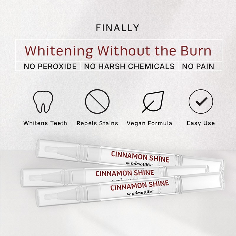 Primal Life Organics Real White Teeth Whitening Pens, All-Natural, Peroxide-Free, Sensitivity-Free, 3 Pack (Cinnamon)