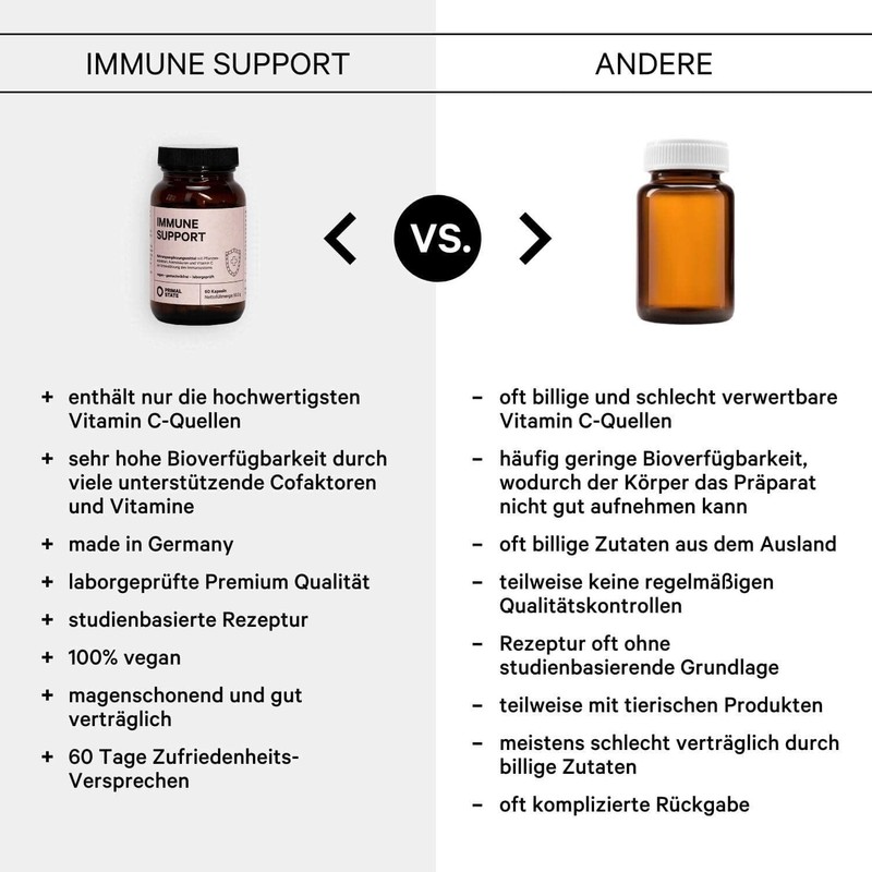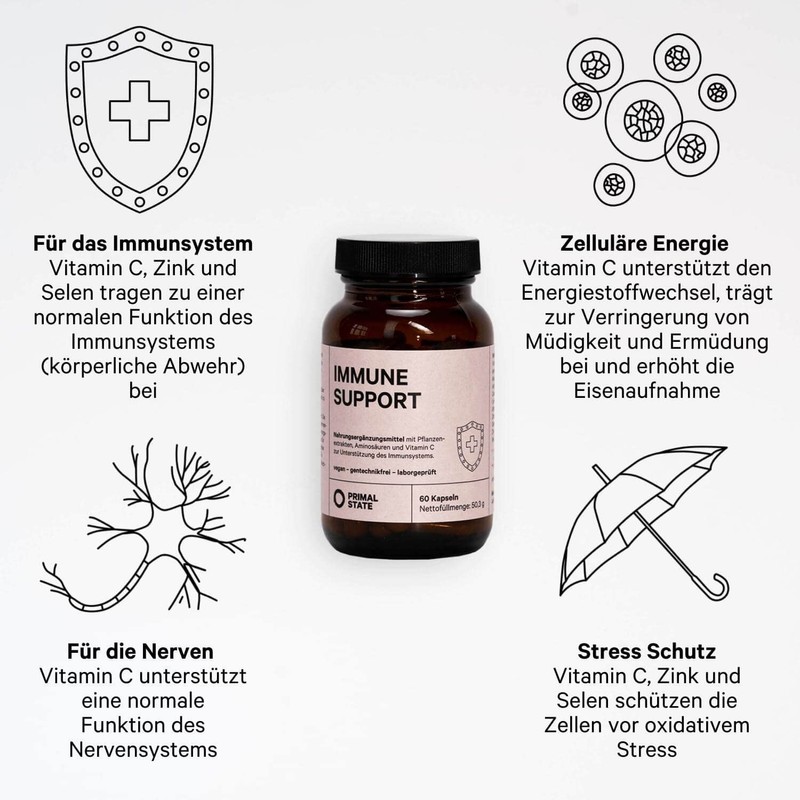- Strong immune system - The high-dose vitamin C in our immune complex supports the normal functioning of your immune system and protects your cells extremely effectively against oxidative stress.