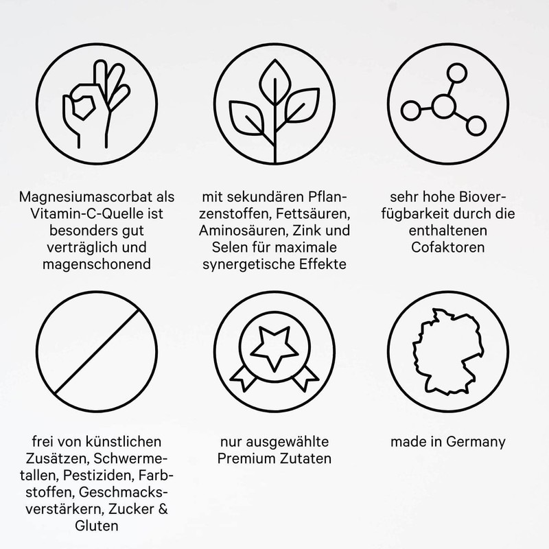 - Supports your nerves – the particularly well tolerated and stomach-friendly magnesium ascorbate ideally contributes to normal and healthy functioning of the nervous system.